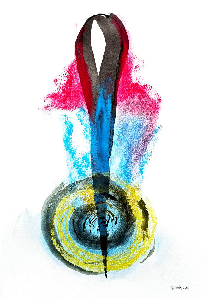 Le Nei Jing Tu est issu de la tradition chinoise. C’est une représentation de l’être humain comme un paysage vivant : montagnes, rivières, chemins ou forêts deviennent des symboles pour traduire tensions, élans, fragilités ou ressources intérieures.